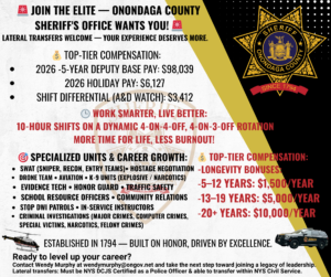 Interested in a career in law enforcement? There are many different opportunities within the Onondaga County Sheriff’s Office.